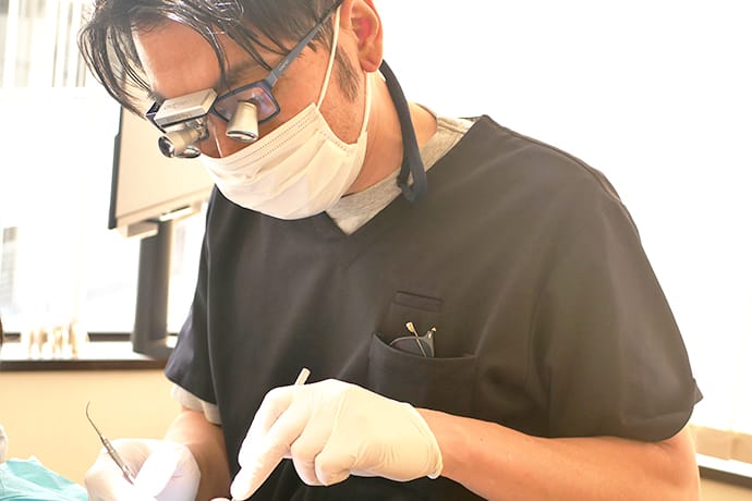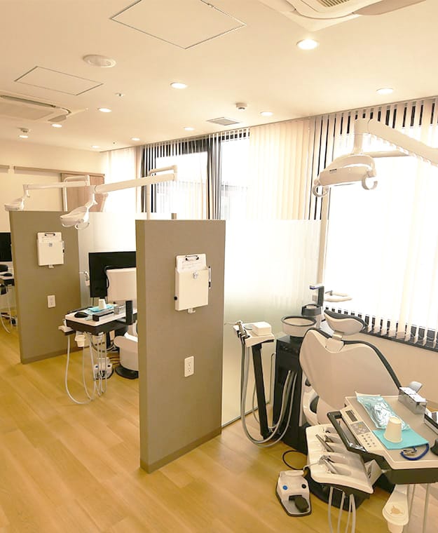 治療器具はそれぞれの特性に合わせて適切に滅菌処理し、常に清潔な状態で管理。さらに口腔外バキュームを使用して診療室内の空気も衛生的に保ち、小さなお子さまからご高齢の方、持病をお持ちの方まで安心して通院いただける環境を整えています。